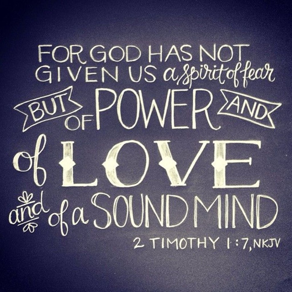 1. My faith has been the biggest help of all during this time. Knowing that I’m saved and God promises to be my help and comfort during this time has been a huge sigh of relief. Even with all the scares going on I honestly can say I’ve never felt more at peace. Mind you I’m not saying I haven’t had anxiety at one time or another over this but I have learned what helps curb it. And one of my favorite verses that is helping me through this is 2 Timothy 1:7 “For God has not given us a spirit of fear, but of power and of love and of a sound mind.”